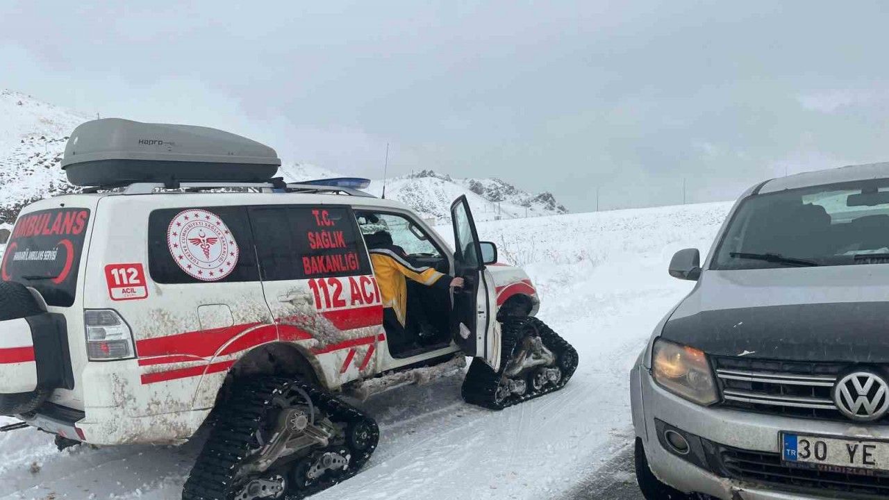 Hakkari İl Özel İdaresi Yüksekova Şantiye Şefliği ekipleri, yüksek kesimlerde karla mücadele çalışmasının yanında hasta kurtarma operasyonlarına da destek verdi.