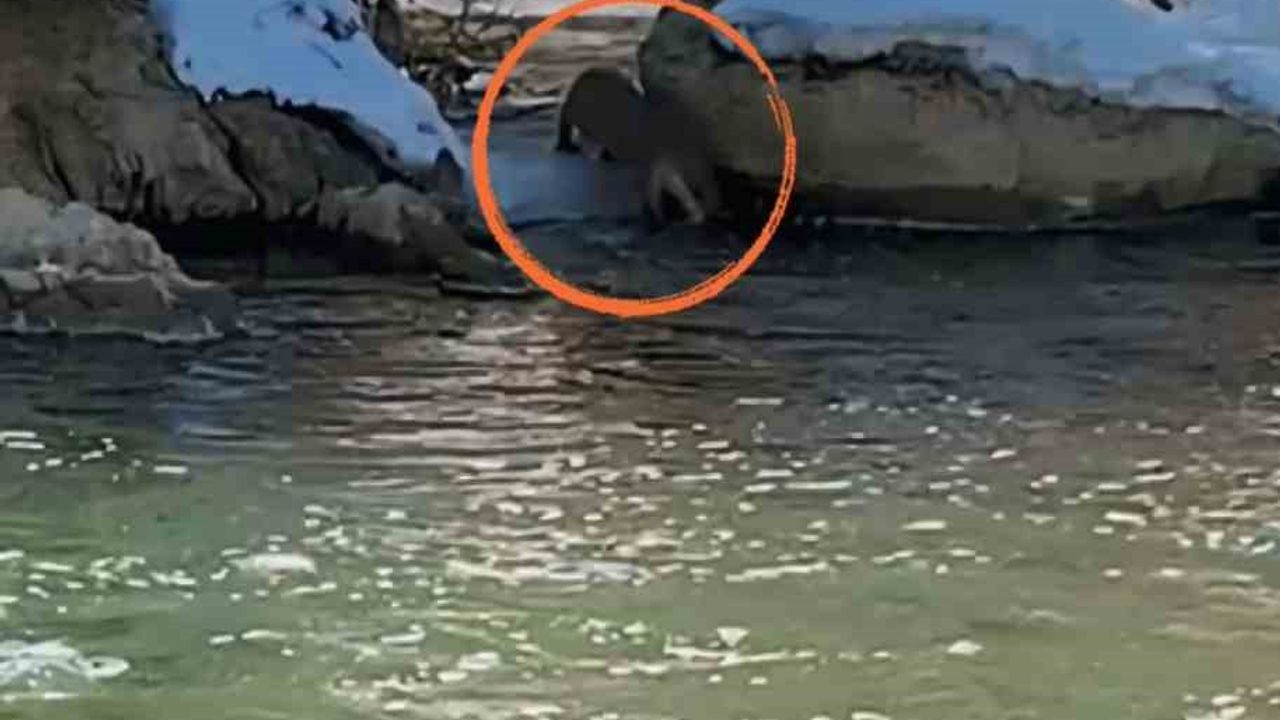 Hakkari’nin Yüksekova ilçesinde nesli tükenme tehlikesi altında olan su samuru görüntülendi.