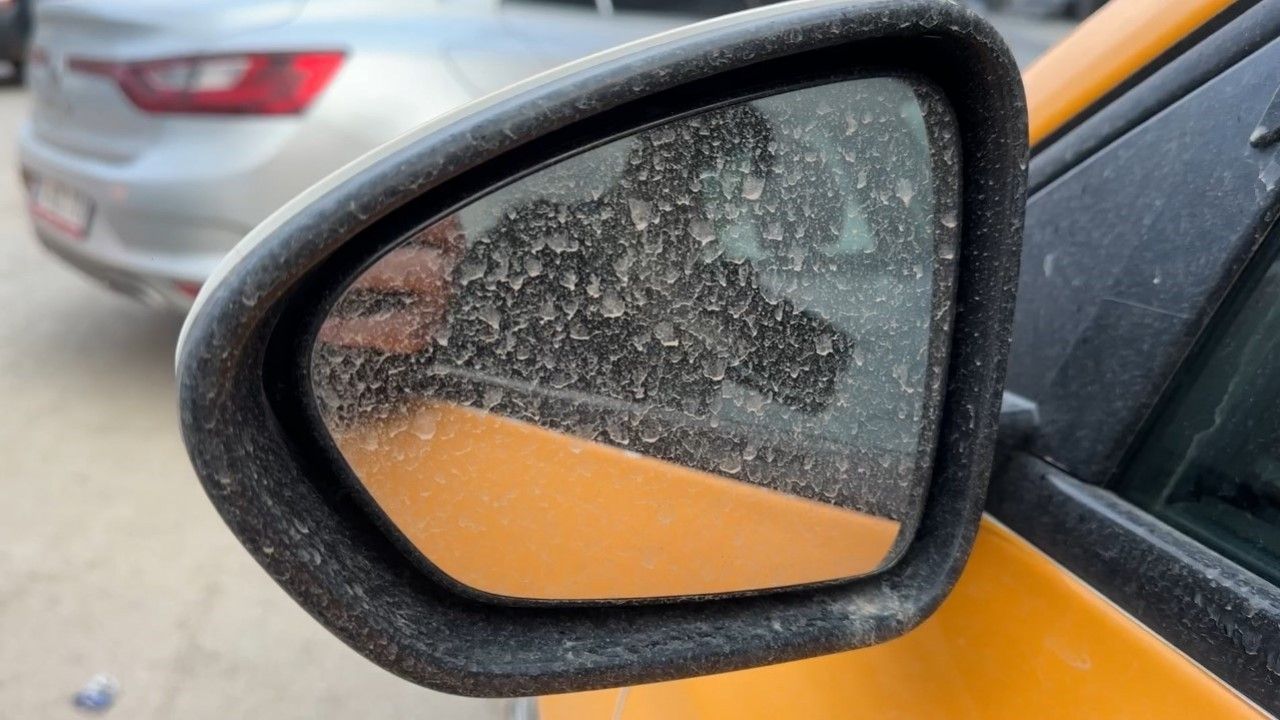 Suriye ve Irak kaynaklı toz taşınımı sonucu Hakkari’nin Yüksekova ilçesindeki araçlar çamura bulandı.